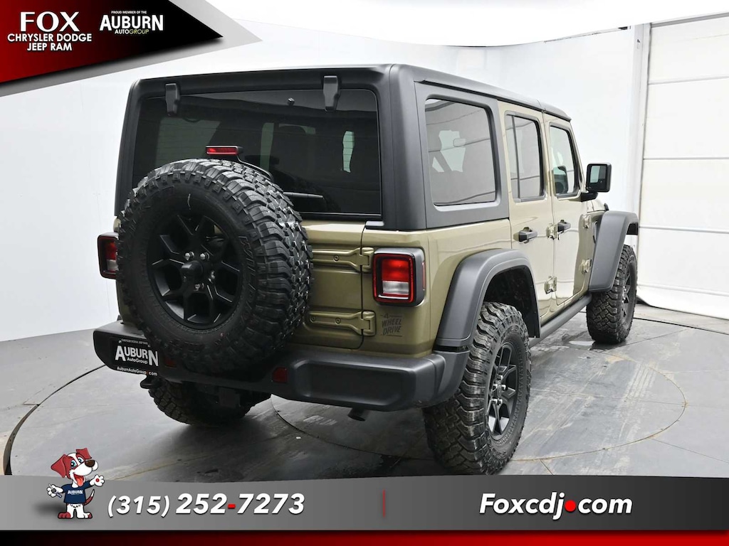 QUICK ORDER PACKAGE 24W WILLYS 3.6L V6 24V VVT UPG I Engine w/ESS, 8-Speed Automatic 850RE Transmission, 7 & 4 Pin Wiring Harness, Conventional Differential Front Axle, 4-Wheel Drive Swing Gate Decal, Black Grille, Injection Molded Black Rear Bumper, Dana M210 Wide HD Tube Front Axle, Daytime Running Lamps LED Accents, Front LED Fog Lamps, LED Premium Reflector Headlamps, E-Locker Rear Axle, Corning Gorilla Glass, Security Alarm, Class II Receiver Hitch, Mold In Color Bumper w/Gloss Black, Advanced Brake Assist, Automatic Headlamps, Off-Road Plus Mode, Willys Hood Decal, Full Speed Forward Collision Warning Plus, Rock Protection Sill Rails, Power Heated Mirrors, Enhanced Adaptive Cruise Control, Auxiliary Switches, Dana M220 Wide Rear Axle, Molded in Color Rubicon Highline Flare, Premium, 8-SPEED AUTOMATIC 850RE TRANSMISSION Adaptive Cruise Control w/Stop, Anti-Lock 4-Wheel Disc Brakes, Integrated Radar Camera Module (IRCM), Dana M200 Rear Axle, Selec-Speed Control, CONVENIENCE GROUP Emergency/Assistance Call, 2-Door Passive Entry, Front Door Locks, Cluster 7.0 TFT Color Display, Universal Garage Door Opener, Heated Front Seats, Air Conditioning w/Auto Temp Control, Heated Steering Wheel, Air Filtering, BLACK 3-PIECE HARD TOP Freedom Panel Storage Bag, Rear Window Defroster, Rear Window Wiper/Washer, 3.6L V6 24V VVT UPG I ENGINE W/ESS Engine Oil Cooler (STD).