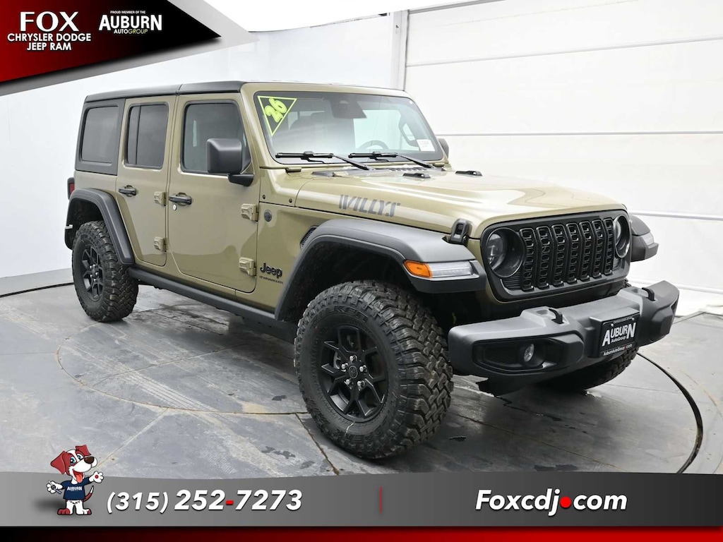 Smart Device Integration, WiFi Hotspot, Apple CarPlay®, 4x4, Aluminum Wheels Jeep Willys with 41 exterior and Black interior features a V6 Cylinder Engine with 285 HP at 6400 RPM*.