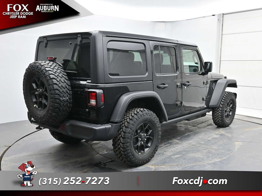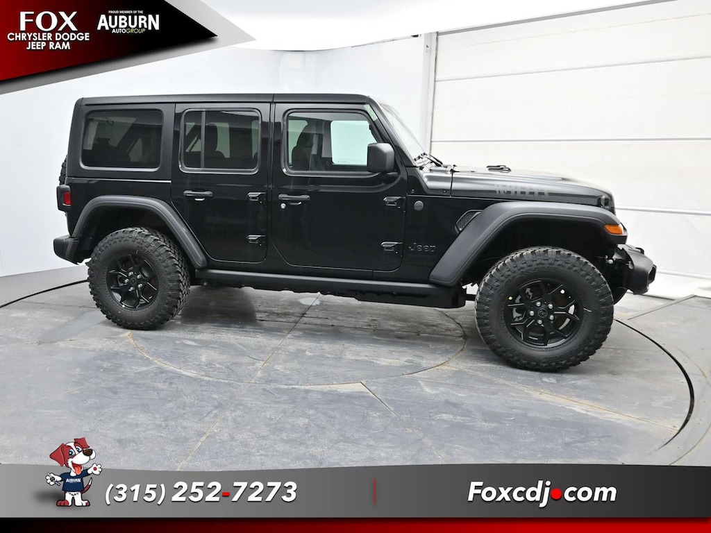 Smart Device Integration, WiFi Hotspot, Apple CarPlay®, 4x4, Aluminum Wheels. Jeep Willys with Black Clearcoat exterior and Black interior features a 4 Cylinder Engine with 270 HP at 5250 RPM*.